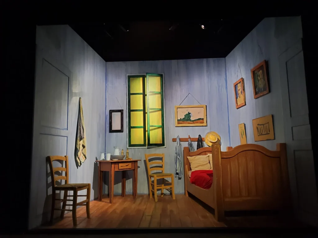 The end of the immersive room as well as the final parts of the exhibit highlight the deterioration of Van Gogh’s mental health.Β Β